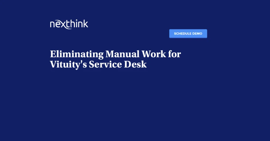 “We were stuck in a place where we were guessing… with lots of manual work that’s been eliminated by Nexthink now.” Hear how Vituity leveraged Nexthink to streamline service desk processes and eliminate manual work. Watch now.