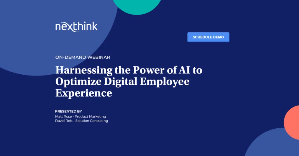 With rapid developments in artificial intelligence, it’s easy to picture a world where IT Teams don’t need to drown in a list of logs, because it’s already here today. Nexthink uses AI to help organizations make the shift from reactive to proactive to preventative IT management, resulting in continued improvement in digital employee experience and productivity.