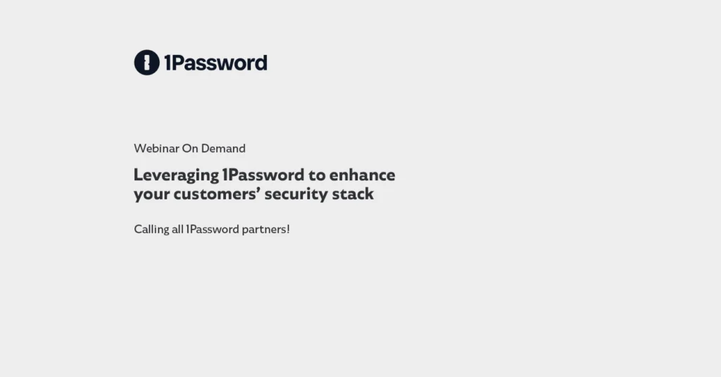 Join us for our very first partner webinar, “Leveraging 1Password to enhance your customer’s security stack,” to jumpstart your partnership with 1Password and set yourself up for success.